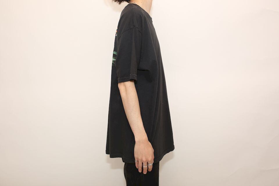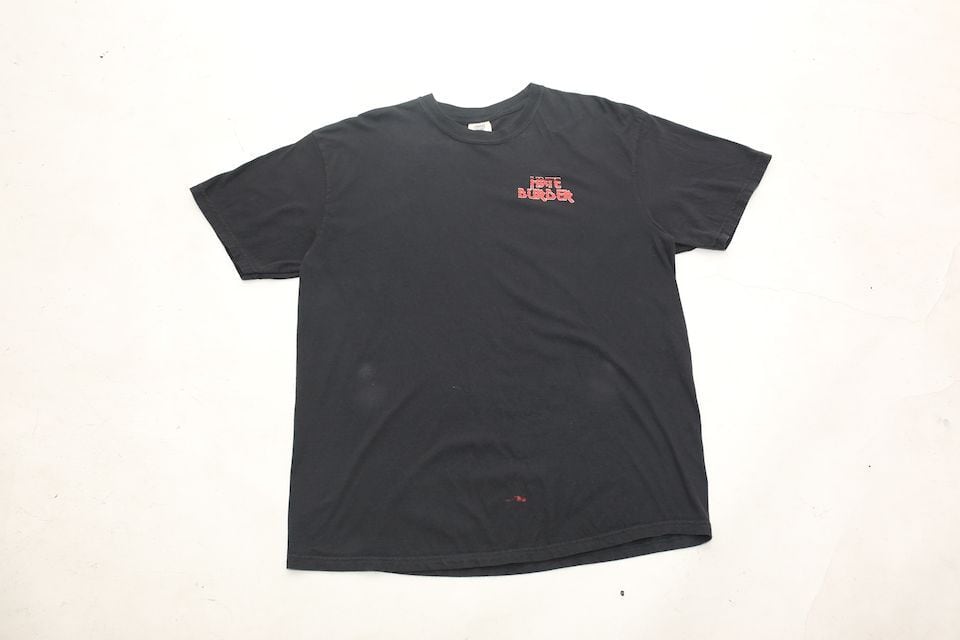 恐らくカリフォルニアにあるハンバーガーショップのストアTシャツになります。一見どこかのバンドの物かなとも思いますが、バックプリントにはしっかりとハンバーガーが入っていました。メタリカのバンドTシャツのフォントに似たものが使われていてパンクにストアのTシャツを着れるユニークな一枚。