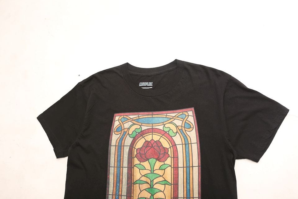 見たことのある方でも気づく人は少なそうなシーズン4に登場するステンドグラスのデザインが目を惹く一枚。アートTシャツの雰囲気でも着やすくてオススメです。