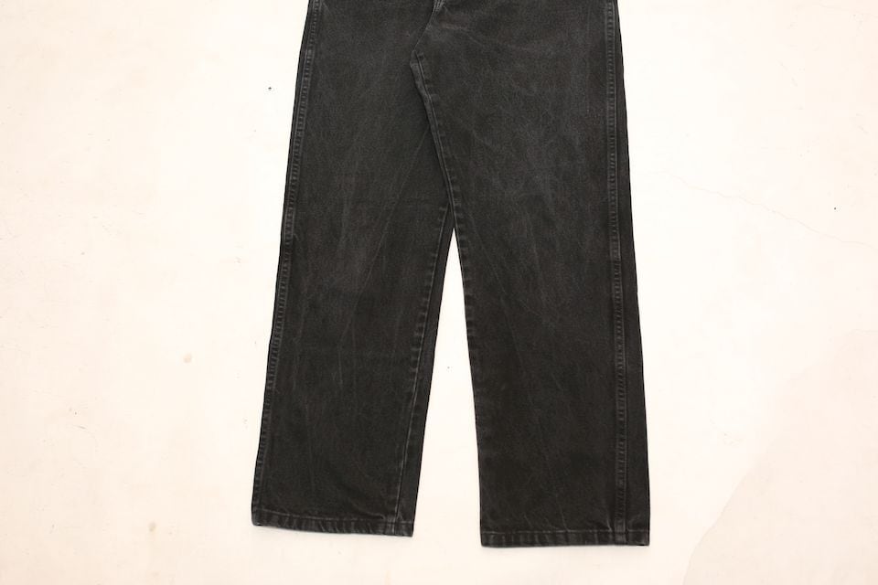 リーバイス、Leeに並ぶアメリカのデニムブランド、ラングラーのブラックデニムパンツになります。リーバイスで言うところの501や505のシルエットに近しいスタンダードなシルエットの一本。程よく色の落ちたデニム特有の魅力がある一本で様々なトップス、シューズと相性よく汎用性の高いデニムパンツ。