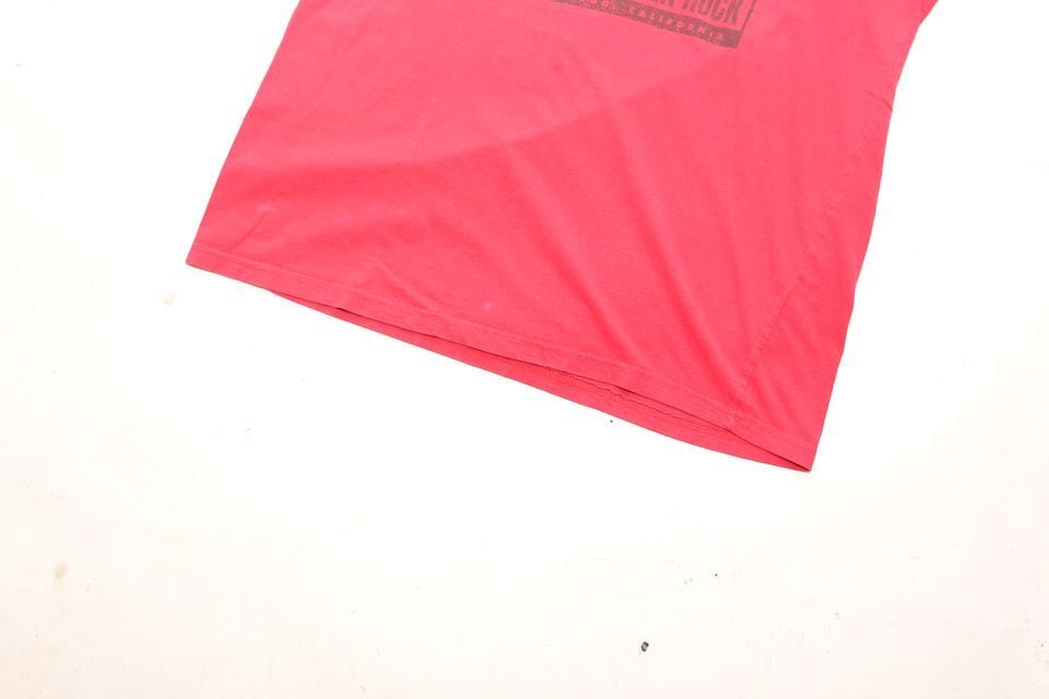 ブリンク182のバンドTシャツです。真っ赤なベースに大きくプリントされたバンド名が印象的で一枚で着こなせるアイテム。また、バンド名の下にある
