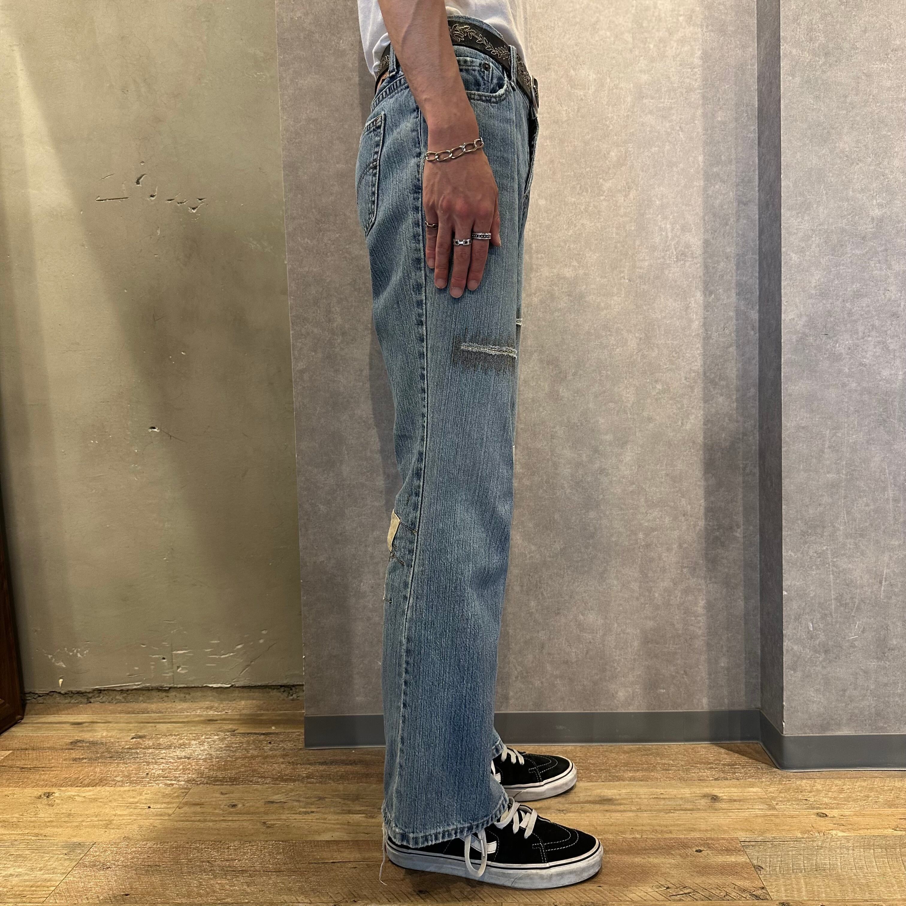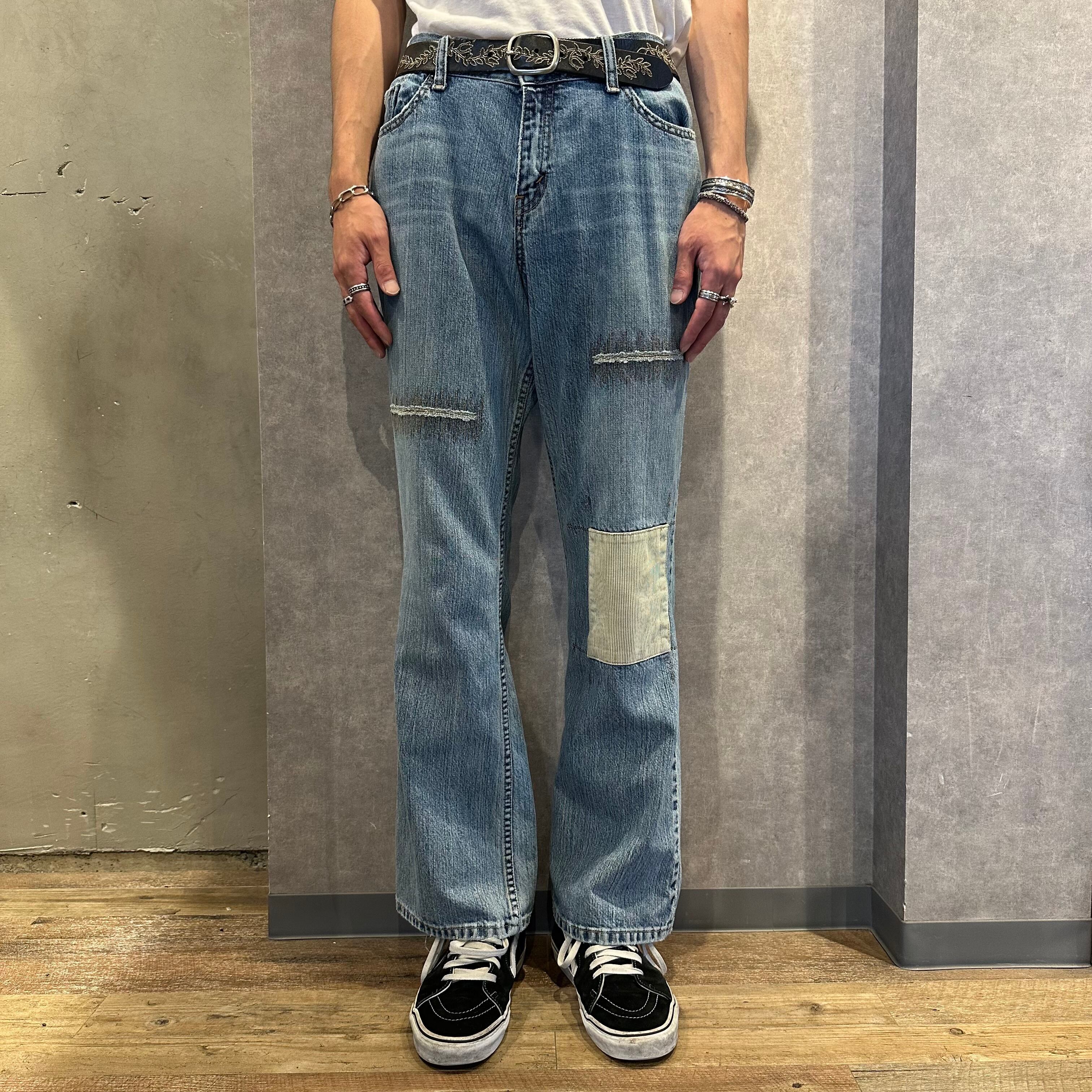 2000年代前半にかけて作られていた型番のようでローライズのフレアシルエットがまさにy2kな雰囲気漂う一本。コーデュロイのパッチやリペアのデザインがカジュアルで良い抜け感のあるフレアデニムです。