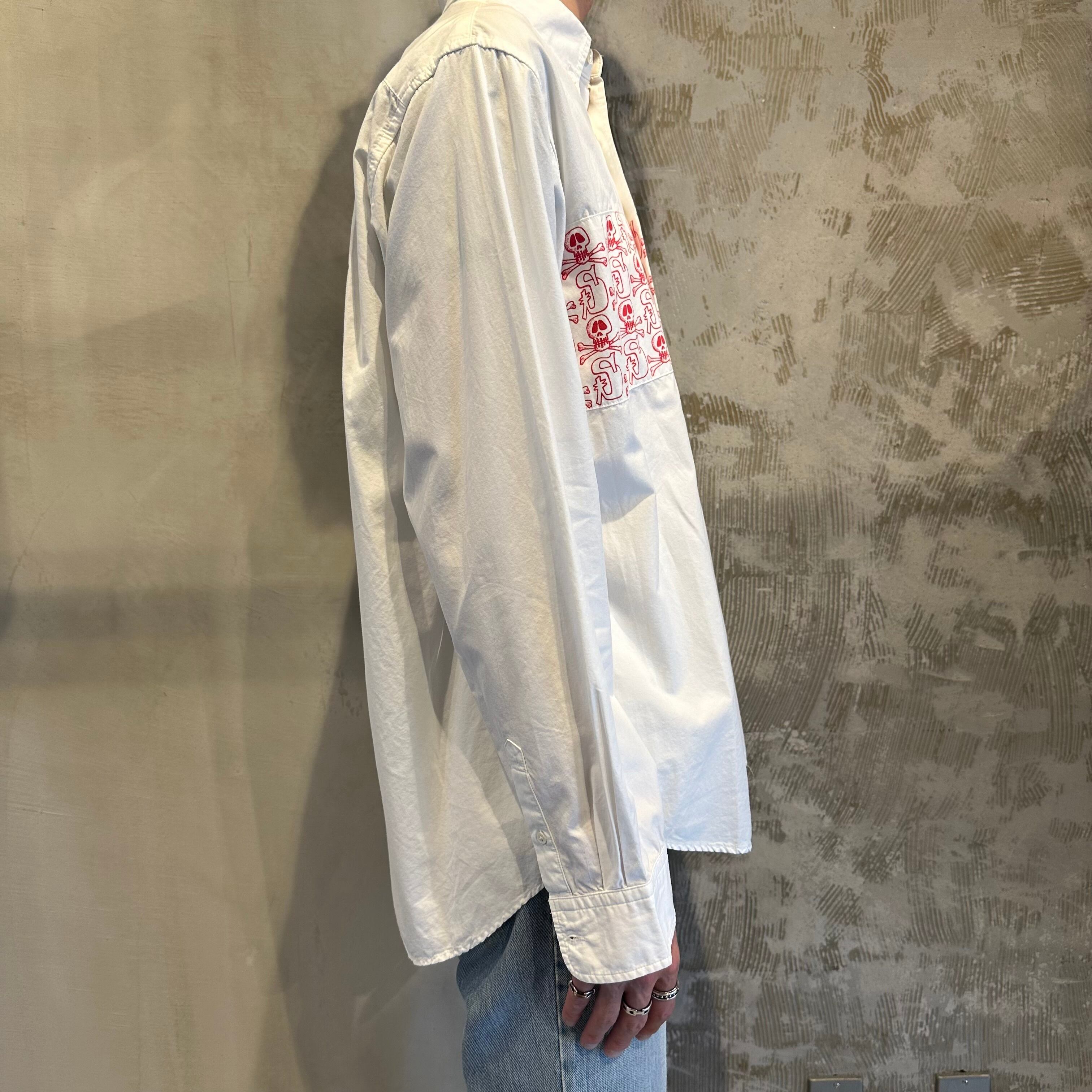 ガイコツがフロントにデザインされた、ホワイトのコットンシャツになります。
