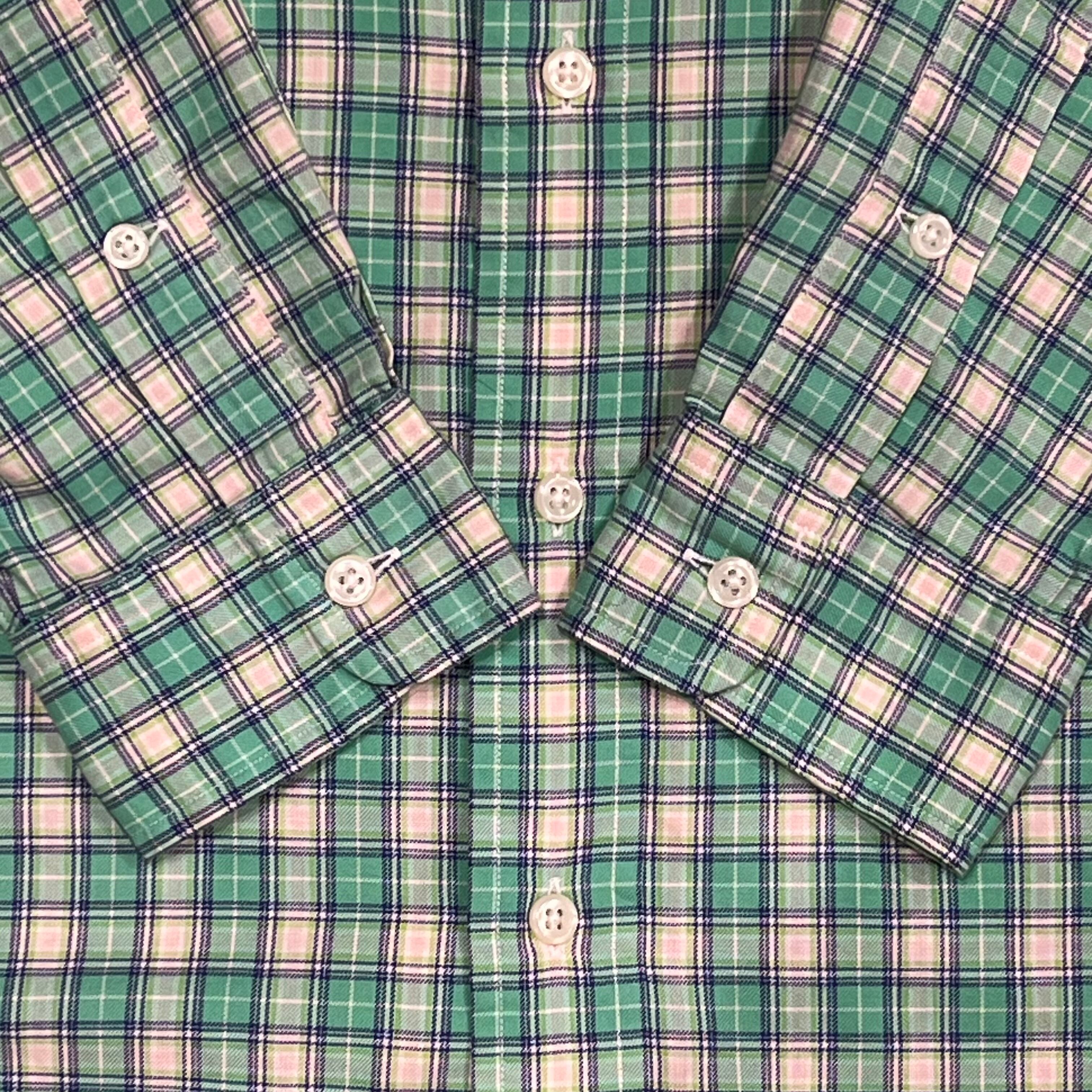 グリーン系チェック×ライトピンク