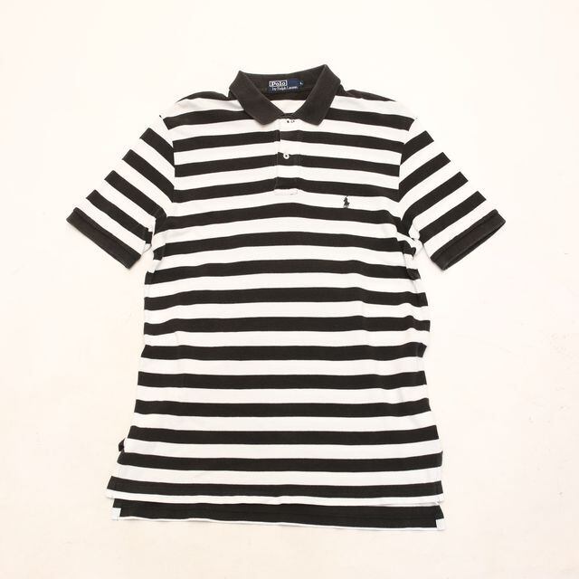 ラルフローレンのポロシャツ。ホワイトとブラックのボーダー柄が印象的な一枚。