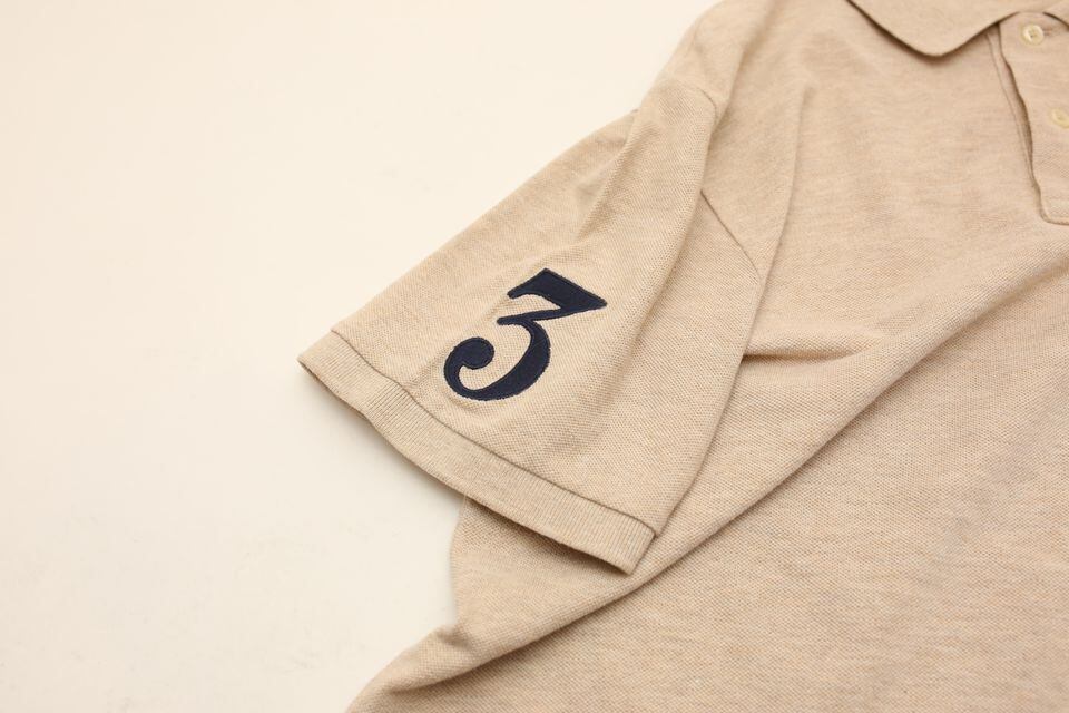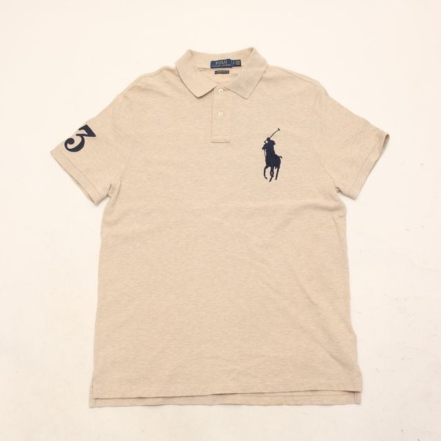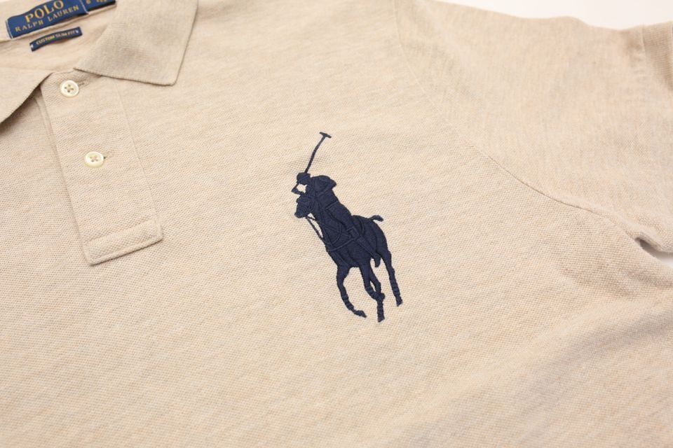 ベージュのボディーにネイビーのビッグポニーという上品な配色の一枚。